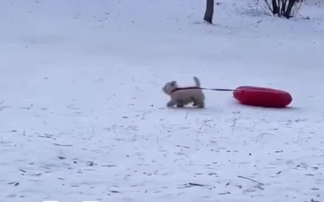 小狗自己拉滑雪圈来回玩耍,网友:玩得好享受啊。
