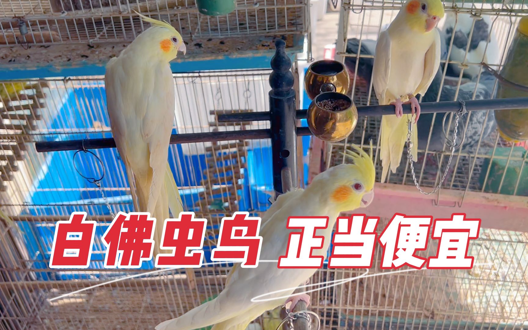 石家庄白佛花鸟鱼虫市场的蝈蝈和鹦鹉,此时正好