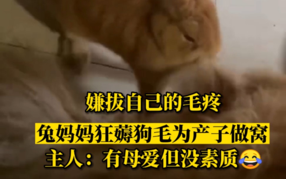 兔妈妈嫌拔自己的毛疼,狂薅狗毛为兔宝宝做窝!主人:挺有母爱但没啥素质
