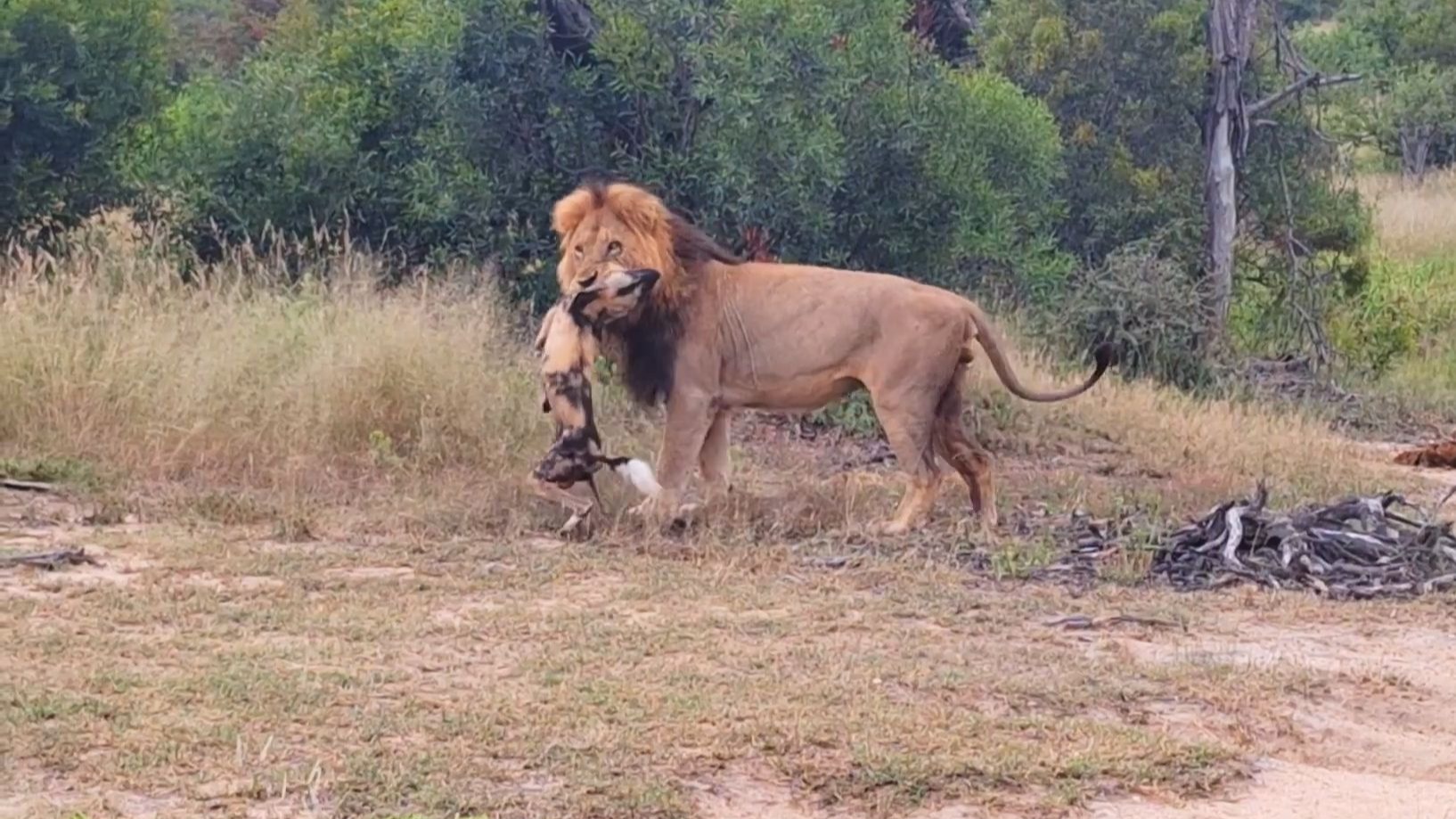 狮子发现落单的野狗