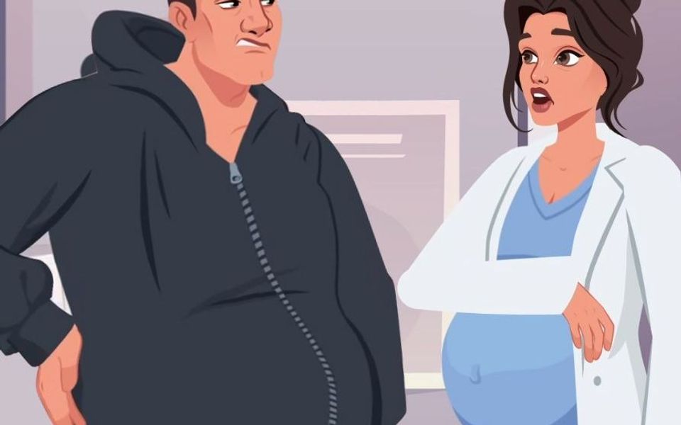 男人挺着个大肚子来到妇产科