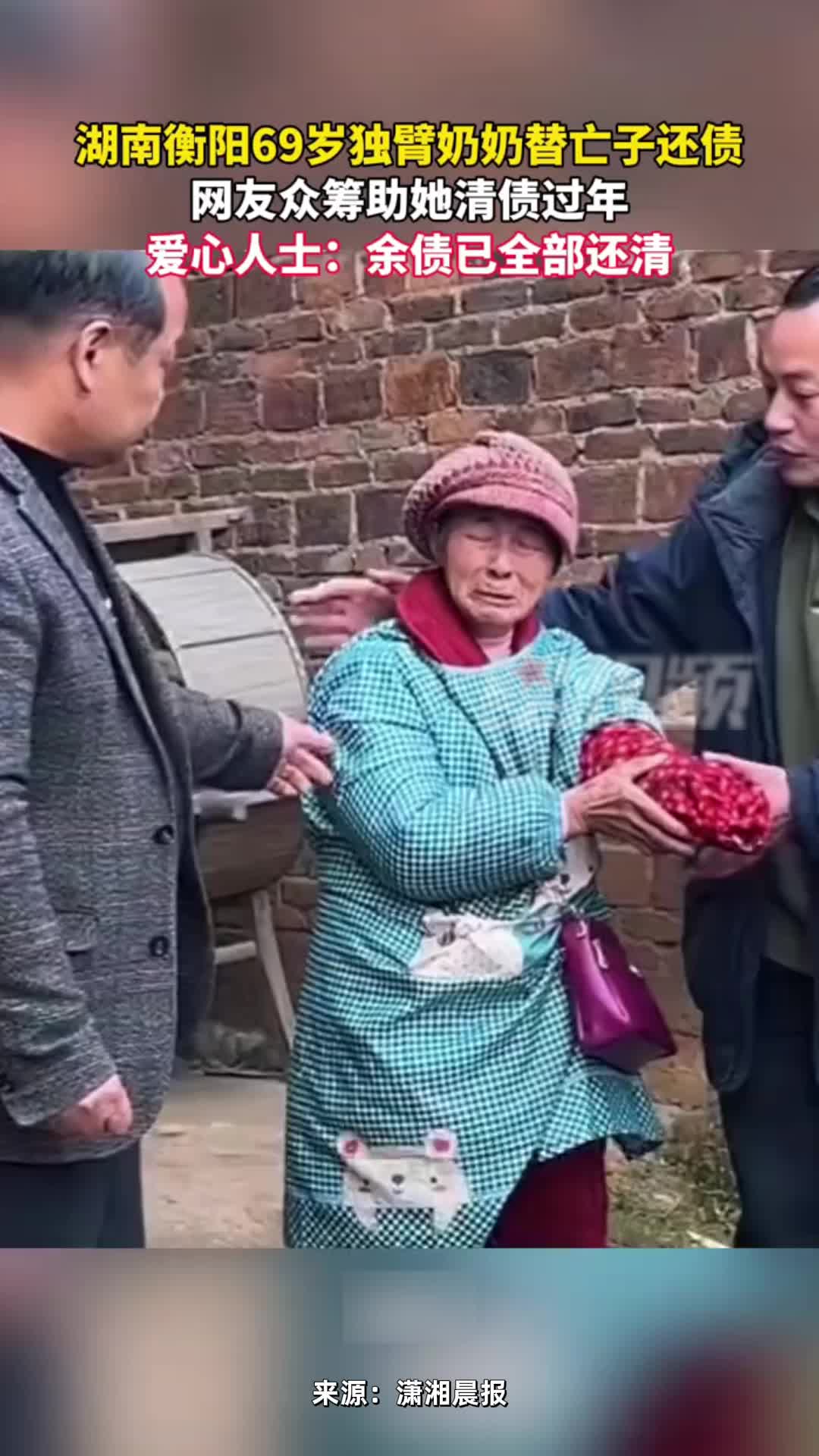 湖南独臂奶奶替亡子还债,网友众筹助她清债过年,老家屋顶已盖好